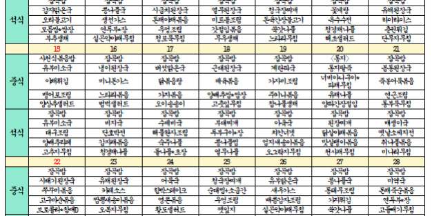 12월22024식단표2024년 12월 02일Post navigationPreviousPrevious post:신체활동- 김장김치 담그기NextNext post:김포효사랑주야간보호 12월간 프로그램 계획입니다.Related Posts김포효사랑주야간보호센터 12월 식단 및 간식표입니다.2025년 12월 10일김포효사랑주야간보호센터 11월 식단 및 간식표입니다.2025년 11월 03일김포효사랑주야간보호센터 10월 식단 및 간식표입니다.2025년 10월 03일김포효사랑주야간보호센터 9월 식단 및 간식표입니다2025년 09월 11일김포효사랑주야간보호센터 8월 식단 및 간식표입니다2025년 08월 05일김포효사랑주야간보호센터 7월 식단 및 간식표입니다2025년 07월 28일