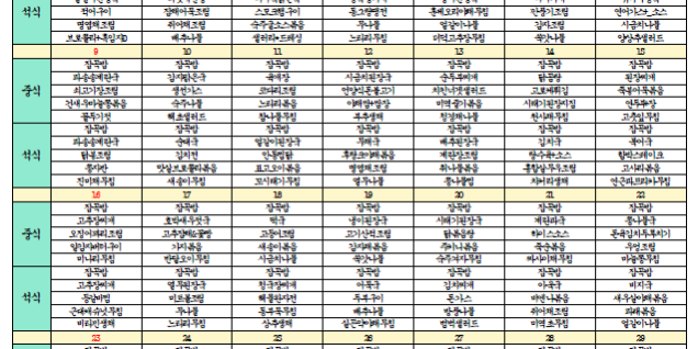 6월62024식단표2024년 06월 06일Post navigationPreviousPrevious post:인지프로그램-뇌호흡체조NextNext post:김포효사랑주야간보호 6월간 프로그램 계획입니다.Related Posts김포효사랑주야간보호센터 12월 식단 및 간식표입니다.2025년 12월 10일김포효사랑주야간보호센터 11월 식단 및 간식표입니다.2025년 11월 03일김포효사랑주야간보호센터 10월 식단 및 간식표입니다.2025년 10월 03일김포효사랑주야간보호센터 9월 식단 및 간식표입니다2025년 09월 11일김포효사랑주야간보호센터 8월 식단 및 간식표입니다2025년 08월 05일김포효사랑주야간보호센터 7월 식단 및 간식표입니다2025년 07월 28일