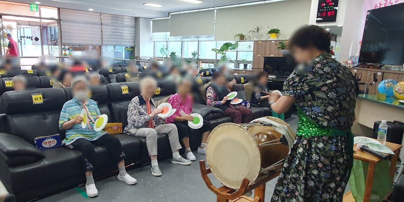 즐겁게 무대 앞에서 동료 어르신들과 함께
