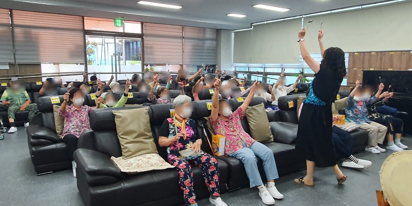 은 숟가락으로 소리를 내시며 율동을 따라 하시고 기합도 넣으시며