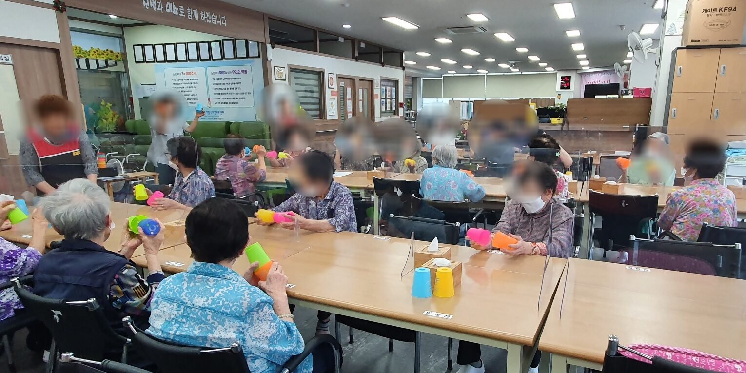 회상 종이에 옛날에 아이스께끼를 먹던 모습을 생각하시며 그림 활동에도