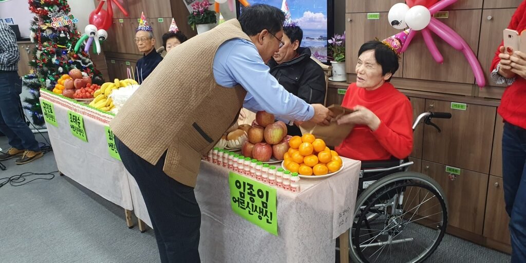 12월272019프로그램참여 앨범12월 27일 12월 생신을 다른 어르신들과 직원들의 축복 속에 생신잔치가 있었습니다 2019년 마지막 생신 잔치와 생신이 지나시고 입소 하신 어르신들을 올 한해가 지나기 전에 함께 생신 축하 잔치를 열어 드렸습니다 어르신들의 즐거운 모습속에 김포색스폰 동우회의 축하 공연과 국악인 양 은별의 국악 한마당이 함께 하여 더욱 기분 생신 잔치가 되었습니다 2019년 12월 27일Post navigationPreviousPrevious post:12월 27일 우드공예 작품 만들기NextNext post:2020년 01월 식단표입니다Related Posts맞춤프로그램-실버체육2025년 12월 10일양곡어린이집-공연행사2025년 11월 19일김포문화재단-공연행사2025년 10월 24일사회적응-생신잔치2025년 09월 08일사회적응- 현충탑 방문2025년 06월 06일사회적응-생신잔치2025년 03월 08일