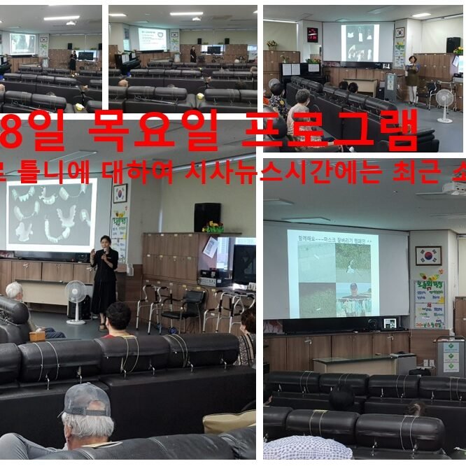 목요일은 건강강좌와 시사뉴스 프로그램을 하는 날 입니다 건강강좌는 틀니의 관리 요령과 관련 사항에 대하여 알아보는 시간을 가지시고 오후에는…