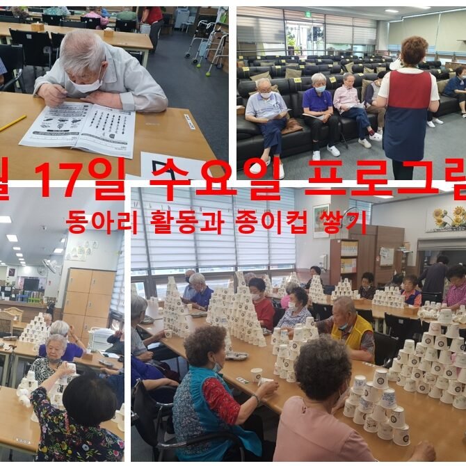 수요일은 동아리활동으로 그 동안 배우고 싶었던 것들을 배우시는 시간으로 어르신들의 참여도가 매우 좋으싶니다 오후에는 컵쌓기를 통해 즐거운 시간을…