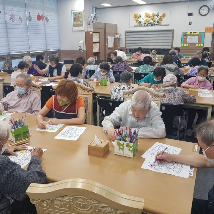 오늘은 색칠공부 하는 날~~~ 귀여운 손주들이 재미있게 놀고 있는 그림을 이쁘게 꾸며 주싶니다 같은 그림이지만 어르신들의 성향에 따라…