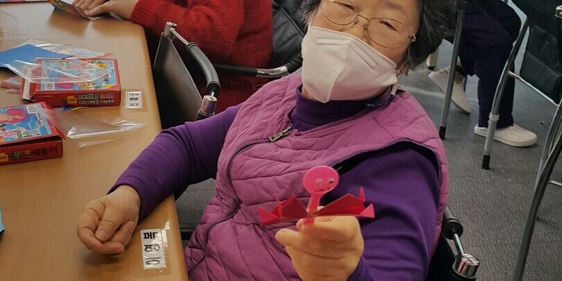 2월192021프로그램참여 앨범★ 잠자리만들기 ★좋아하는 색의 색종이를 사용하여 자신만의 고유한 개성과 느낌을 살려 작품 완성하셨다. 만들기 활동으로 소근육 발달 및 풍부한 표현력 함양되었다.작품 완성 후 만족감과 성취감 향상되었다. 잠자리 만든후 잠자리 노래를 부르며 즐거워하셨다. https://gimpohyo.co.kr/wp-content/uploads/2021/02/KakaoTalk_20210219_144843563.mp4 2021년 02월 19일Post navigationPreviousPrevious post:2021년 2월 18일 목요일 프로그램일정NextNext post:2021년 2월 20일 토요일 프로그램일정Related Posts김포문화재단-공연행사2025년 10월 24일사회적응-생신잔치2025년 09월 08일사회적응- 현충탑 방문2025년 06월 06일사회적응-생신잔치2025년 03월 08일맞춤프로그램- 실버웃음치료2025년 02월 18일신체활동- 김장김치 담그기2024년 11월 15일