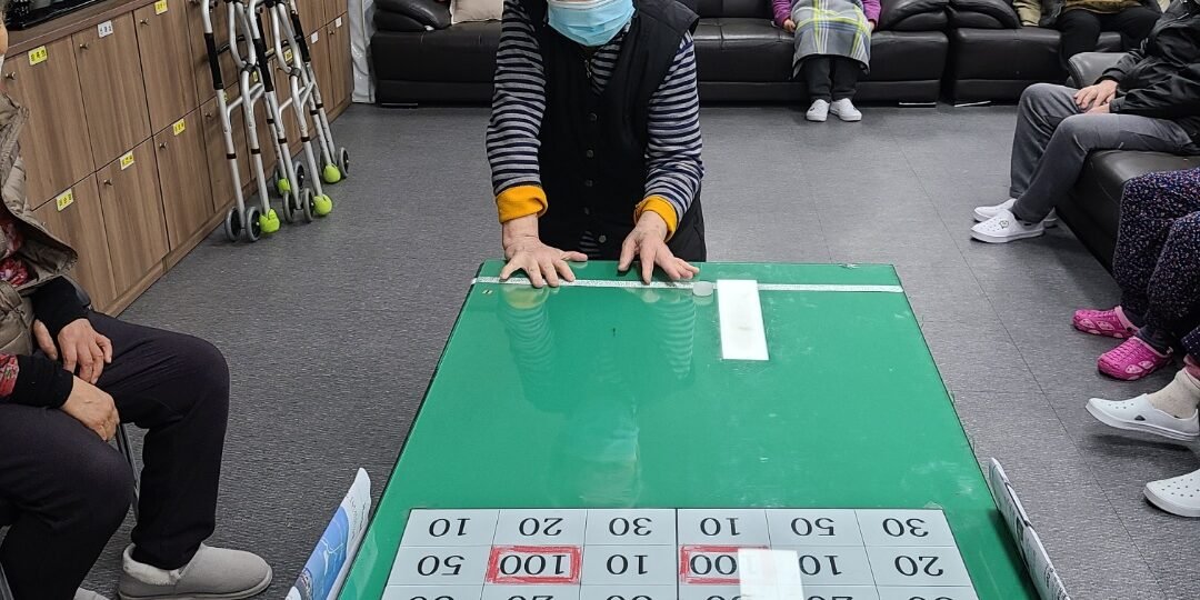 2월92021프로그램참여 앨범★ 병뚜껑게임 ★병 뚜껑을 목표 점수를 향해 힘껏 날리며 손의 힘, 강약 조절을 통해 소근육 운동을 했다. 거리를 재며 한 두번 던져보니 손에 익는다며 재밌게 참여하셨다. 병 뚜껑이 도중에 떨어지지 않고 정확한 위치에 안착시킬 수 있도록 집중력을 발휘하셨다.점수별로 시상을 하니 성취감도 느끼시고 자존감도 상승시키며 즐거운 시간을 보냈다. 2021년 02월 09일Post navigationPreviousPrevious post:2021년 2월 6일 토요일 프로그램일정NextNext post:2021년 2월 8일 월요일 프로그램일정Related Posts김포문화재단-공연행사2025년 10월 24일사회적응-생신잔치2025년 09월 08일사회적응- 현충탑 방문2025년 06월 06일사회적응-생신잔치2025년 03월 08일맞춤프로그램- 실버웃음치료2025년 02월 18일신체활동- 김장김치 담그기2024년 11월 15일