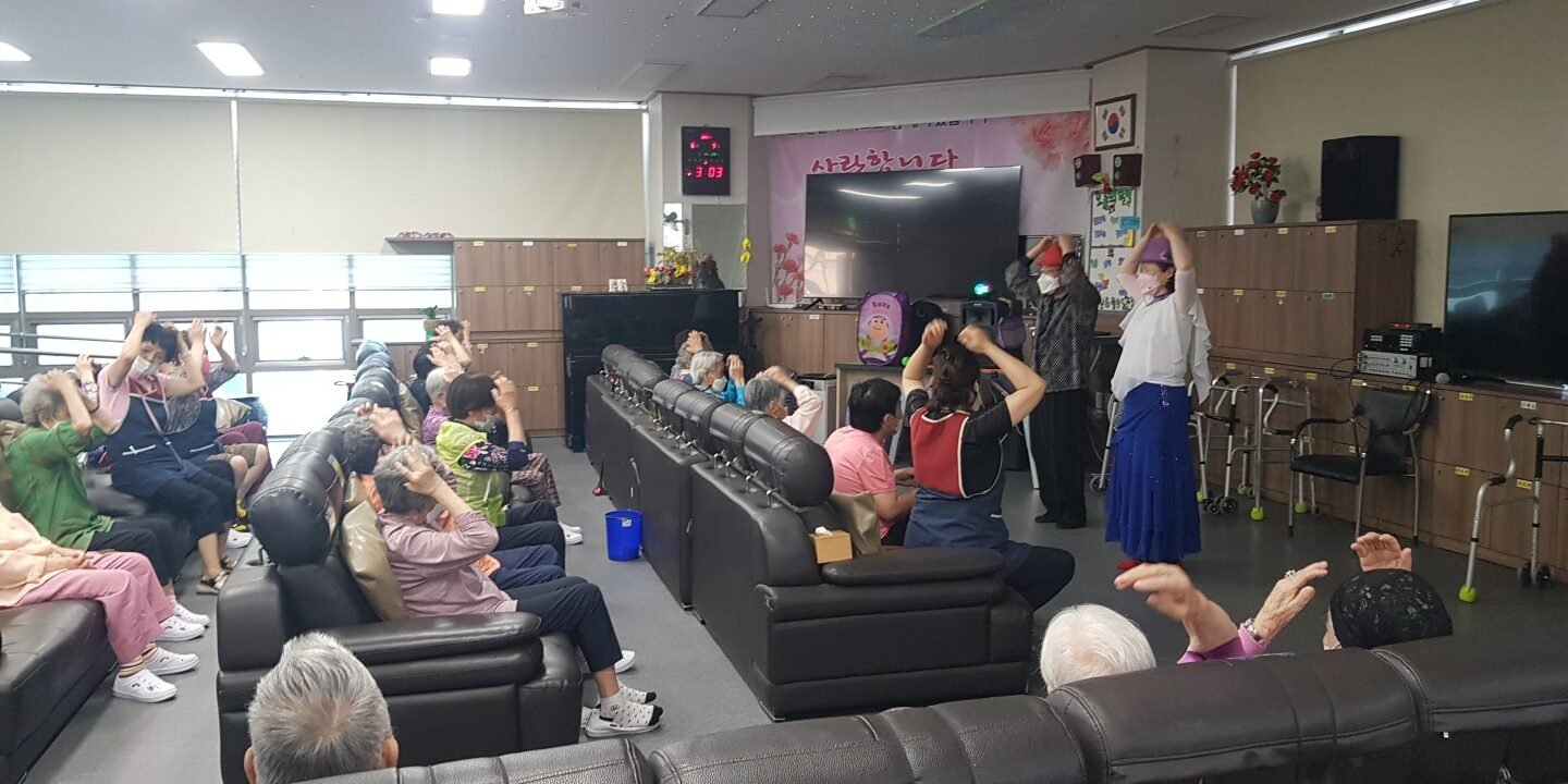 신바람체조는 인생을 재미있게 즐기자를 목표로 스트레칭 건강체조와 두드리기 운동으로 행복웃음한마당을 진행하고, 여러가지 옛 물건들을 통한 회상요법활동으로 치매예방과 더불어 하하 호호 웃으며 재미있게 놀고 행복하게 즐기는 프로그램이며 또한 좌우 뇌 활용으로 중풍예방과 치매예방의 레크레이션을 통해 대인 관계 회복 및 자존감 회복으로 살맛나는 단체생활을 할 수 있도록 돕는 프로그램입니다.