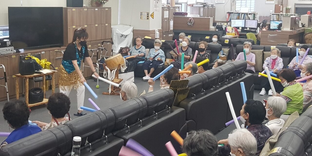 가끔은 멋진 마리오네트 공연으로 어르신들읜 환호를 받기도 하시고, 정말 칭찬해 드리고픈 장점은 시작된 초여름의 더위에도 불구하고 어르신들의 방역안전을 위해 페이스 쉴드를 단 한번도 벗지 않으시고 프로그램을 진행하십니다.