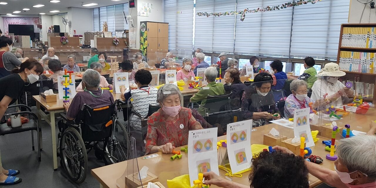 7월152021프로그램참여 앨범★ 맞춤 프로그램(브레인교육) ★여러 가지 도구를 이용하여 여러 가지 모양과 형태를 조립하는 놀이 시간입니다오늘은 나무블럭과 사이퍼블럭을 이용하여 다양한 모양으로 독창적인 형태를 조립하고 놀면서 창의력과 소근육을 유지에 도움이 됩니다오늘은 블록을 이용하여 왕관도 만들고 끔틀끔틀 뱀 모양도 만들어보며 창의력과 독창성을 길러보시며 즐거워 하싶니다어르신들에게 친화력을 주며 집중력, 기억력 등을 향상 시킨다고 합니다…주변 어르신들과 상의하시며 서로 도와가며 퍼즐 맞추시는 모습을 보여 주시는 어르신들입니다마지막은 가벼운 율동을 하시며 활력이 되는 시간을 보내시며 다음 시간을 기다리는 분이 많으싶니다 2021년 07월 15일Post navigationPreviousPrevious post:2021년 7월 14일 수요일 프로그램 현황입니다NextNext post:2021년 7월 16일 금요일 프로그램 현황Related Posts맞춤프로그램-실버체육2025년 12월 10일양곡어린이집-공연행사2025년 11월 19일김포문화재단-공연행사2025년 10월 24일사회적응-생신잔치2025년 09월 08일사회적응- 현충탑 방문2025년 06월 06일사회적응-생신잔치2025년 03월 08일