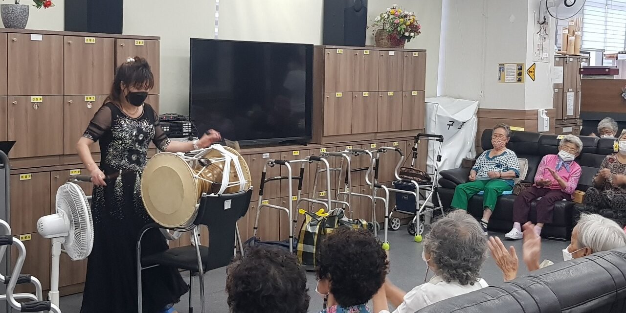 가끔은 멋진 마리오네트 공연으로 어르신들읜 환호를 받기도 하시고, 정말 칭찬해 드리고픈 장점은 시작된 초여름의 더위에도 불구하고 어르신들의 방역안전을 위해 페이스 쉴드를 단 한번도 벗지 않으시고 프로그램을 진행하십니다.