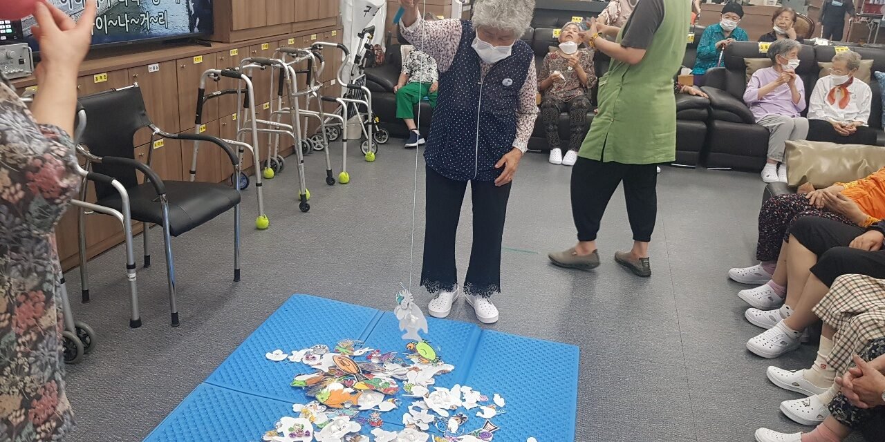 직접 그리신 물고기를 낚시대를 이용하여 낚시를 하시며 집중력과 자신감향상이 되는 시간을 갖으시며 한 번에 두 마리 세 마리의 물고기를 잡으시며 “앗싸~ ~ ~ ~”
