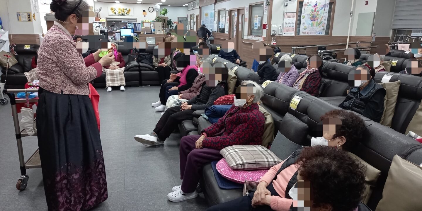 오늘은 색다르게 설날의 관련된 물품을 가져오셔서 보여주시고 어르신들게 보여드리면서 옛 기억을 회상을 하실 수 있도록 도와드렸습니다~~