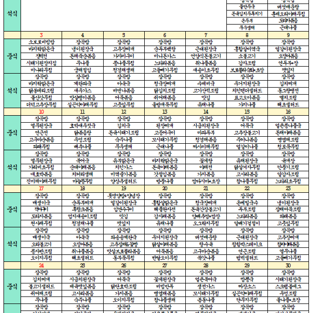 김포효사랑주야간센터 11월 식단표 및 간식 식단입니다.