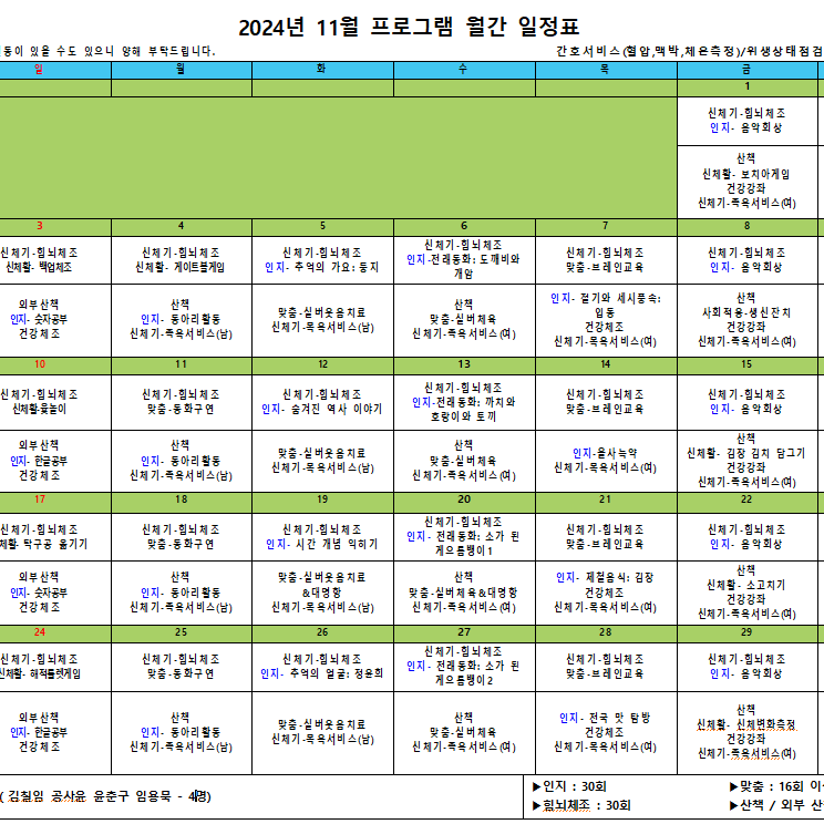 김포효사랑주야간보호 11월간 프로그램 계획입니다.