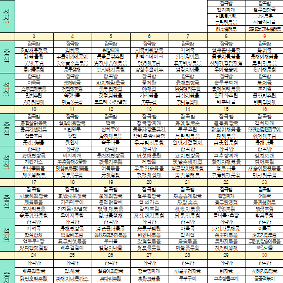 김포효사랑주야간보호센터 11월 식단 및 간식표입니다.