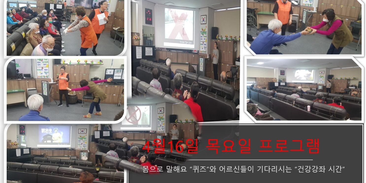 4월162020프로그램참여 앨범4월 16일 목요일 프로그램으로건강강좌와 몸으로 말해요 생활퀴즈와 상품으로 즐거운 시간을 보내고 계싶니다. 2020년 04월 16일Post navigationPreviousPrevious post:4월 15일 수요일 프로그램 진행 현황입니다.NextNext post:4월 17일 프로그램 사진Related Posts김포문화재단-공연행사2025년 10월 24일사회적응-생신잔치2025년 09월 08일사회적응- 현충탑 방문2025년 06월 06일사회적응-생신잔치2025년 03월 08일맞춤프로그램- 실버웃음치료2025년 02월 18일신체활동- 김장김치 담그기2024년 11월 15일
