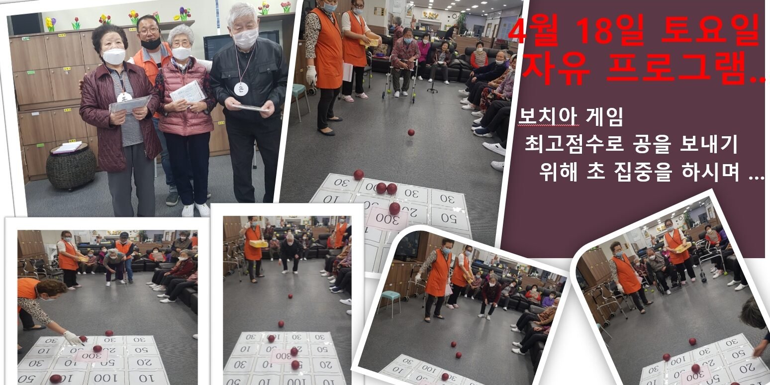 4월182020프로그램참여 앨범토요일 자유프로그램 시간 ” 보치아 게임”을 하시며 최고 점수 300점을 만들기 위해 집중력과 힘조절까지 집중력 최고입니다. 2020년 04월 18일Post navigationPreviousPrevious post:4월 17일 프로그램 사진NextNext post:4월20일 프로그램 현황입니다Related Posts김포문화재단-공연행사2025년 10월 24일사회적응-생신잔치2025년 09월 08일사회적응- 현충탑 방문2025년 06월 06일사회적응-생신잔치2025년 03월 08일맞춤프로그램- 실버웃음치료2025년 02월 18일신체활동- 김장김치 담그기2024년 11월 15일