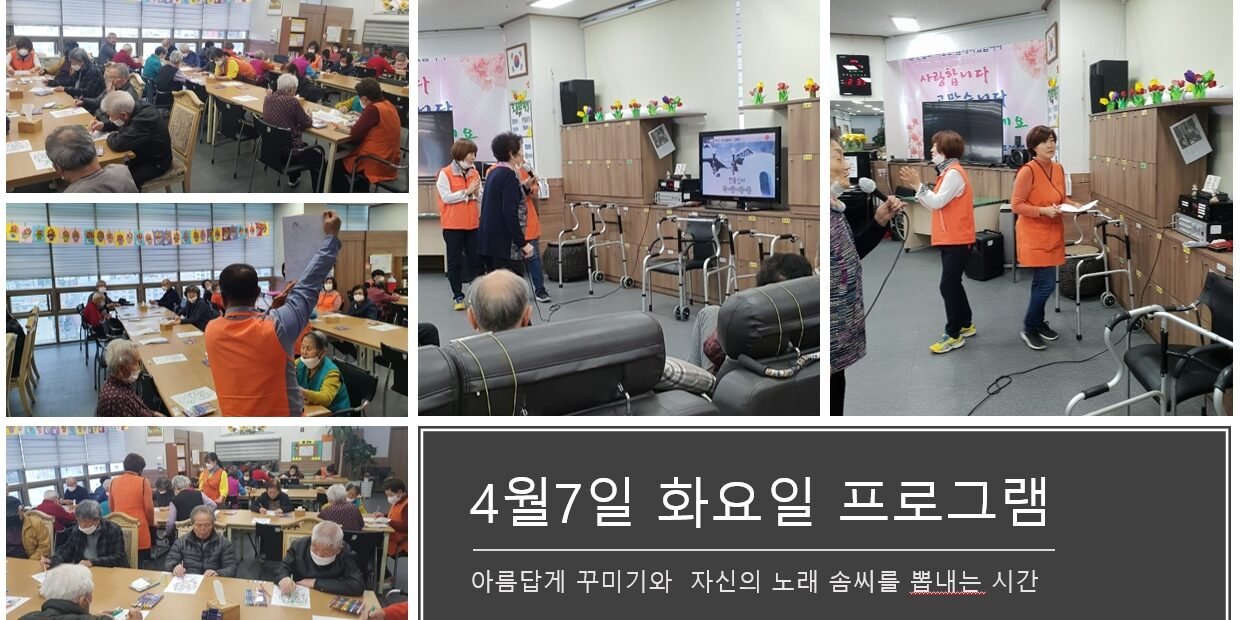 4월92020프로그램참여 앨범밝고화사한 색상으로 색을 칠하시고 노래 자랑 시간에는 자신의 노래 실력을 다른 분들 앞에서 자랑하싶니다. 2020년 04월 09일Post navigationPreviousPrevious post:4월 6일 월요일 프로그램활동 모습NextNext post:4월 8일 수요일 게임을 통한 즐거운 시간을….Related Posts김포문화재단-공연행사2025년 10월 24일사회적응-생신잔치2025년 09월 08일사회적응- 현충탑 방문2025년 06월 06일사회적응-생신잔치2025년 03월 08일맞춤프로그램- 실버웃음치료2025년 02월 18일신체활동- 김장김치 담그기2024년 11월 15일