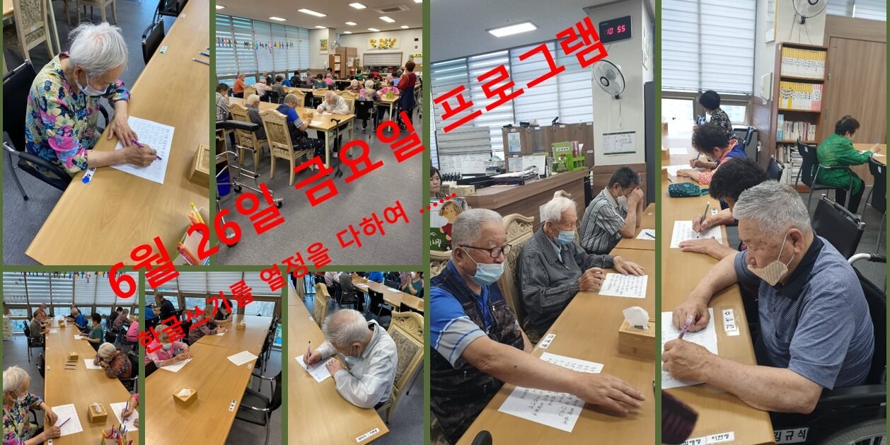 6월302020프로그램참여 앨범한글쓰기를 하시며 멋진 필체를 남기시는 날입니다매월 마지막 금요일은 6월에 생신이신 분들의 생신 축하잔치가 있는날입니다6월 생신을 맞이하신 최쌍수, 주옥선,나윤식, 지용선어르신의 생신을 모든 직원과 다른 어르신들이 축하해 드렸습니다 2020년 06월 30일Post navigationPreviousPrevious post:6월25일 목요일 프로그램 현황NextNext post:6월 29일 월요일 프로그램 현황Related Posts김포문화재단-공연행사2025년 10월 24일사회적응-생신잔치2025년 09월 08일사회적응- 현충탑 방문2025년 06월 06일사회적응-생신잔치2025년 03월 08일맞춤프로그램- 실버웃음치료2025년 02월 18일신체활동- 김장김치 담그기2024년 11월 15일