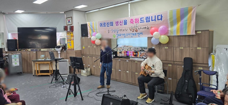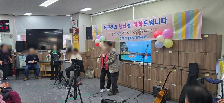 어르신께서 생신 잔치 활동을 즐겁게 참여하셨습니다.
