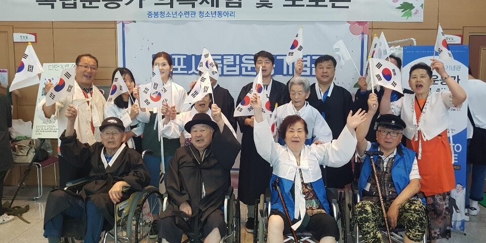 8월152019프로그램참여 앨범 광복절과 독립운동의 희생의 의미를 생각하며 그때의 의상 그때의 기분으로 대한독립만세를 외치며 독립의 의미를 생각합니다.8월 15일 “74주년 광복절” 독립의 의미를 생각하며….김포에서 독립 운동가의 영화를 감상하고 김포의 독립열사의 설명과 만세 운동을 기리며 광복절의 의미를 다시금 생각한 하루를 보냈습니다. “오래된 내일” 음악극을 보시며 독립을 위해 노력하신 열사들을 생각하며 다시금 “대한독립 만세”를 불러 보았습니다.2019년 08월 15일Post navigationPreviousPrevious post:2019년 08월 프로그램 월간 일정표NextNext post:8.23일 학운어린이집 위문 방문… 귀여운 율동, 즐거움…Related Posts맞춤프로그램-실버체육2025년 12월 10일양곡어린이집-공연행사2025년 11월 19일김포문화재단-공연행사2025년 10월 24일사회적응-생신잔치2025년 09월 08일사회적응- 현충탑 방문2025년 06월 06일사회적응-생신잔치2025년 03월 08일