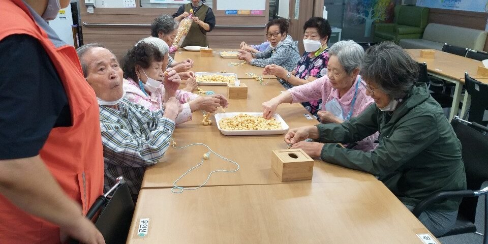 9월102020프로그램참여 앨범일요일 코로나 확산으로 야외 활동이 제한 됨에 따라 실내에서 과자 목걸이 만들기 게임을 하였습니다어르신들이 과자를 이용한 목걸이를 만드시며 하나 씩 드시는 모습이 어릴적 추억의 한 장면을 꾸며 갑니다 2020년 09월 10일Post navigationPreviousPrevious post:9월 5일 프로그램 현황NextNext post:9월 7일 월요일 프로그램 현황Related Posts맞춤프로그램-실버체육2025년 12월 10일양곡어린이집-공연행사2025년 11월 19일김포문화재단-공연행사2025년 10월 24일사회적응-생신잔치2025년 09월 08일사회적응- 현충탑 방문2025년 06월 06일사회적응-생신잔치2025년 03월 08일