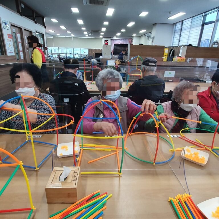 안녕하세요~ 김포효사랑주야간보호센터입니다. 맞춤 프로그램 브레인교육 지난 번에 만들어 본 빨대와 빨대 사이를 이어서 만드는 교구를 가지고…