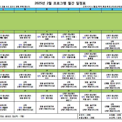 김포효사랑주야간보호 2월간 프로그램계획입니다.