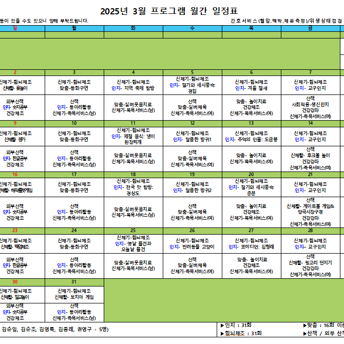 김포효사랑주야간보호센터 3월 월간프로그램계획입니다.