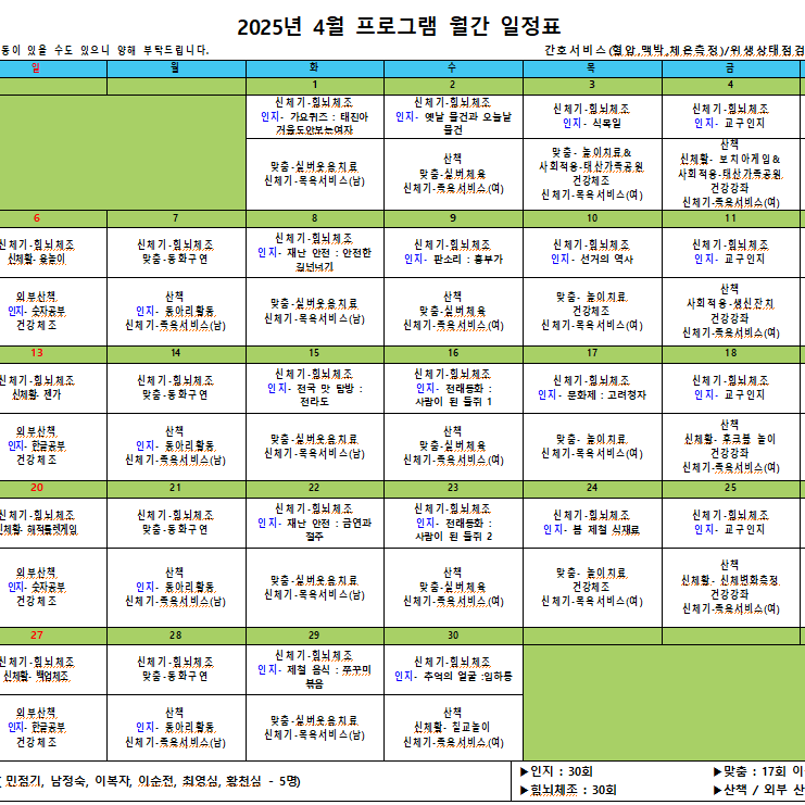 김포효사랑주야간보호 4월간 프로그램계획입니다.
