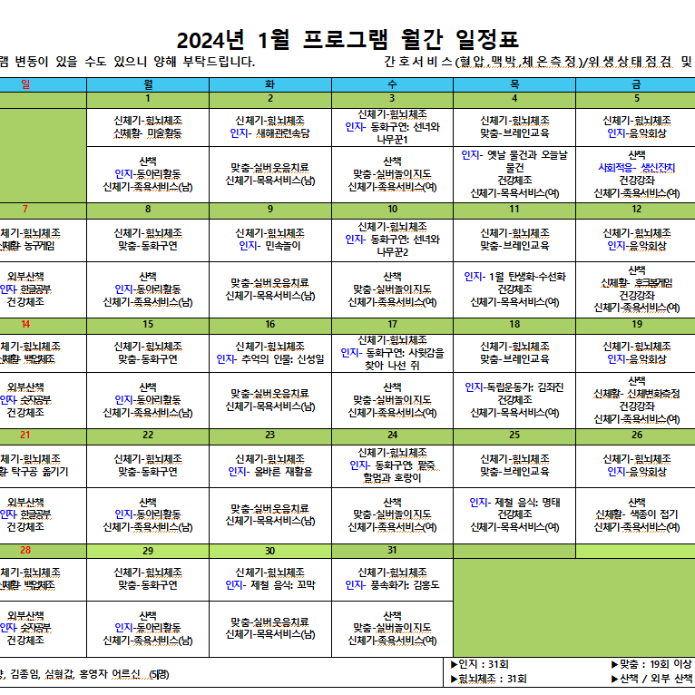김포효사랑주야간보호 1월간 프로그램 계획입니다