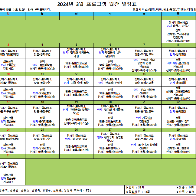 김포효사랑주야간보호 3월간 프로그램 계획입니다