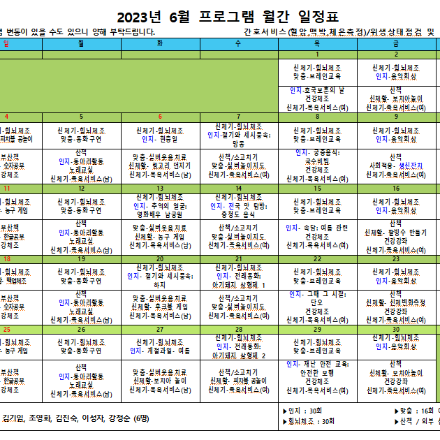 김포효사랑 주야간센터 6월 월간 프로그램 계획입니다.