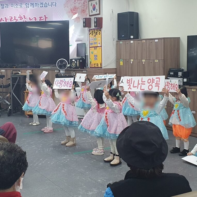 김포효사랑주야간보호센터입니다. 양곡어린이집에서 어르신 간식을 지원해주시며 양곡어린이집 원장님 인사로 시작하여 귀여운 4살반 아이들이 등장에 어르신들께서 너무 반가워 하시며…