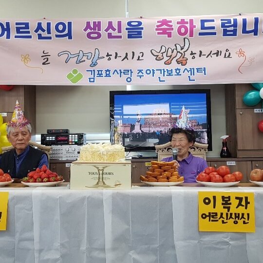 2월22일 김포효사랑에서 생신잔치가 있던날~~ 우상철어르신,허영애어른신,이춘자어르신 생신을 진심으로 축하드립니다♥♥ 김포색소폰동호회에서 생신잔치를 빛내주셨습니다…. 김포효사랑 원장님이 자그마한 선물도 준비해주셨습니다…