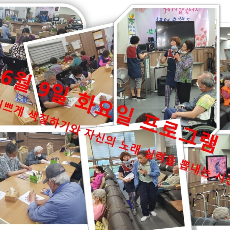 화요일은 어르신들의 색체 감각을 알아보는 시간으로 색칠하기시간으로 화사한 꽃을 이쁘게 만드시고 오후에는 자신의 숨은 노래 솜씨를 뽑내는 시간을…