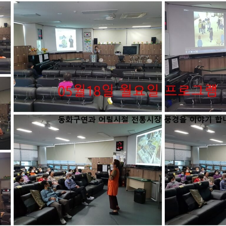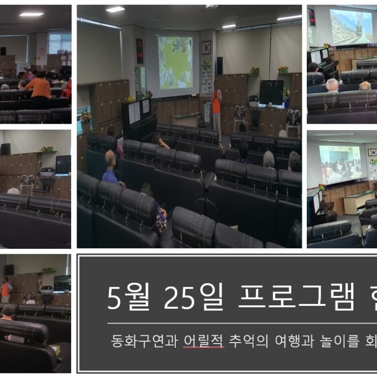 월요일 프로그램 현황으로 오전에는 동화구연으로 “복 받으러 가는 청년”과 ” 재주많은 삼형재”의 이야기를 들으시고 오후에는 어릴적 추억의 여행과…