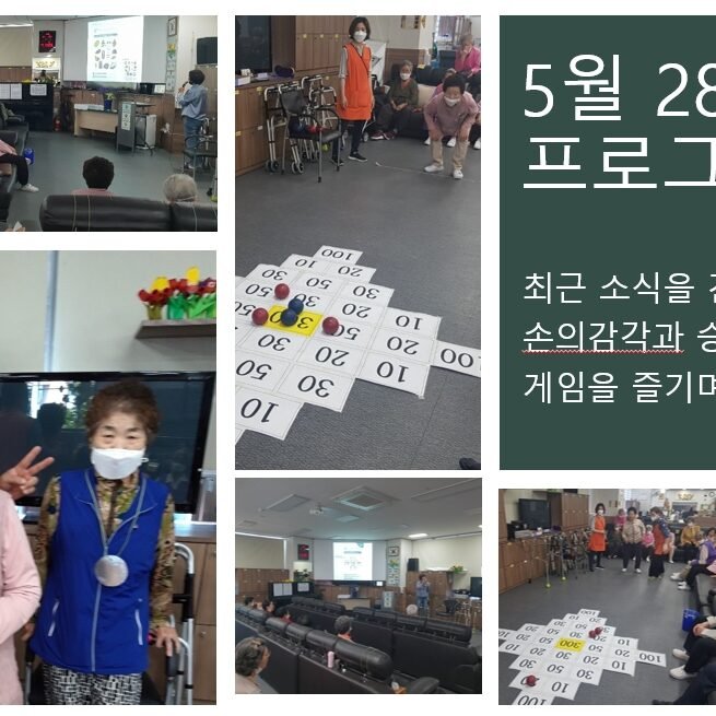 오전에는 세상돌아가는 소식을 간추려 알려 드리는 시사뉴스 시간을 가지시고 오후에는 게임을 통해 손의 감각과 힘조절 승부욕을 키우는 게임을…