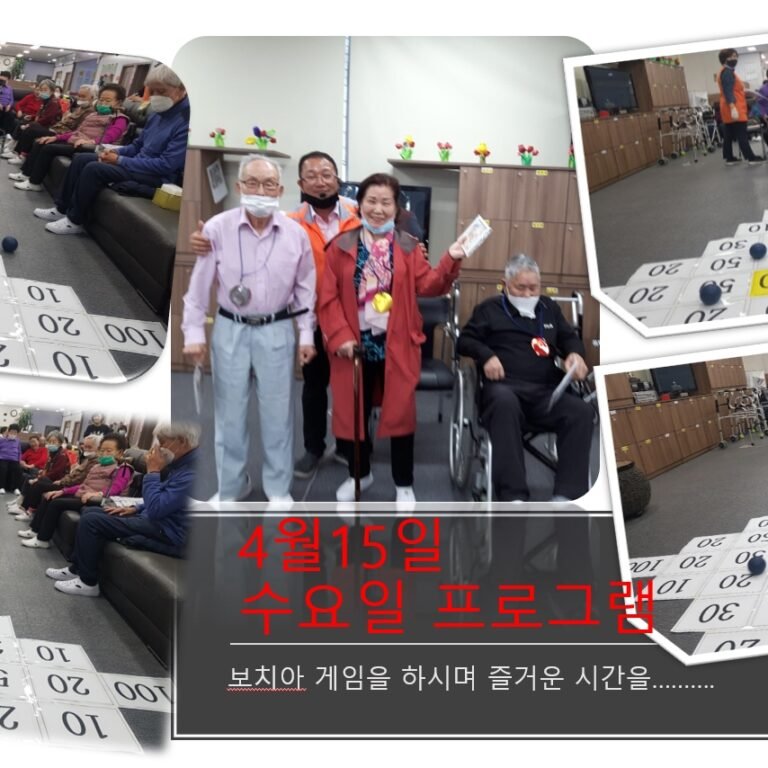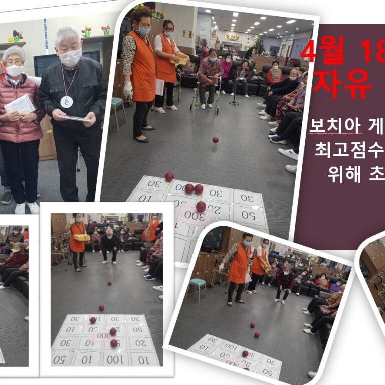 4월 15일 수요일 프로그램 보치아게임을 조금 변화를 주어 점수판에 볼을 올리는 방식으로 게임을 진행합니다. 최고점수 300점 점수에 공을…