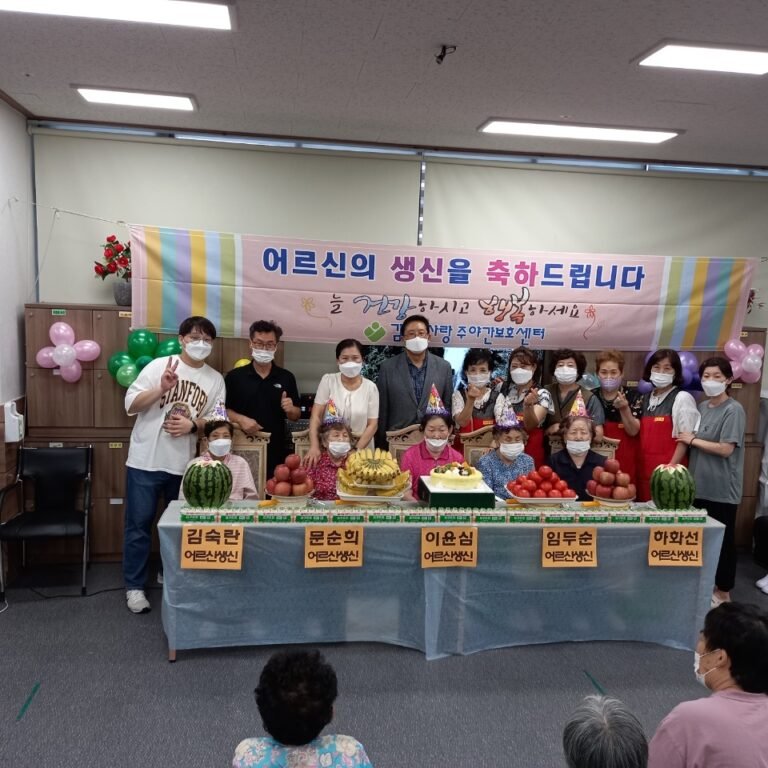 ★ 생신잔치 ★ 김포효사랑 주인주간보호센터는 8월 6일(금) 8월 어르신 생신잔치를 실시하였습니다. 생신 노래 불러드리기, 직원들의 큰절 올리지, 생신…
