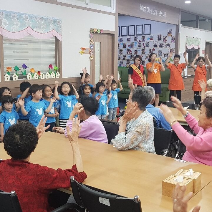 8.23일 학운어린이집 위문 방문…어린이들의 귀여운 율동, 즐거움 웃음을.. 어린이들의 고사리 손으로 어르신들의 어꼐를 두르니 어르신들의 입가에 웃음꽃이 피어나싶니다….…