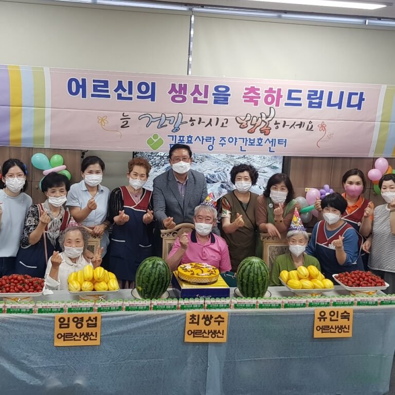 ★ 생신잔치 ★ 김포효사랑 주인주간보호센터는 7월 9일(금) 7월 어르신 생신잔치를 실시하였습니다. 생신 노래 불러드리기, 직원들의 큰절 올리지, 생신…