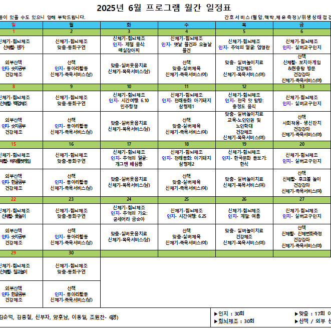 김포효사랑주야간보호 6월간 프로그램계획입니다.