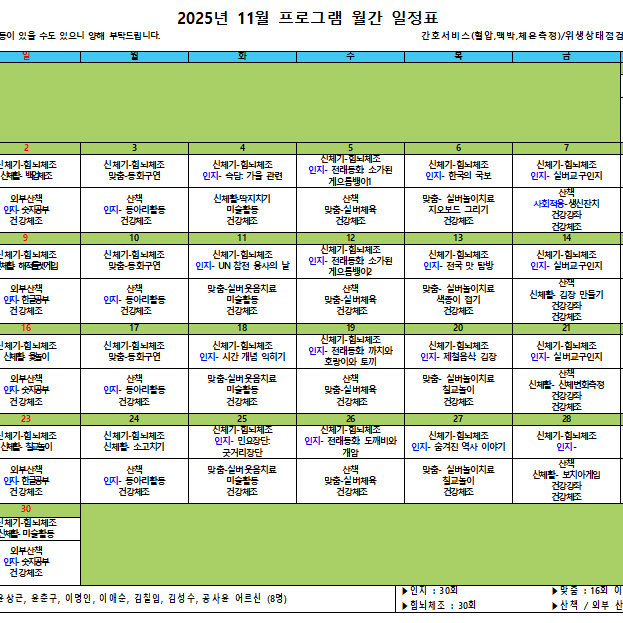 김포효사랑주야간보호센터 11월 월간프로그램계획입니다.